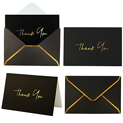 Kraftiga tackkort med kuvert – 36-pack – guld tackbrev, 10 x 15 cm, babyshower, bröllop, småföretag, examen, begravning, möhippa (nattsvart)