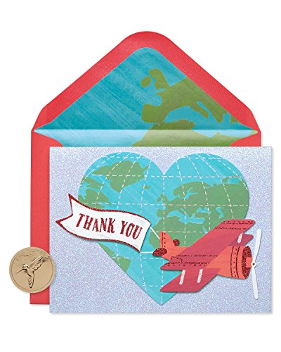 Papyrus tackkort med kuvert, glob och plan med glitter (8-räknad)