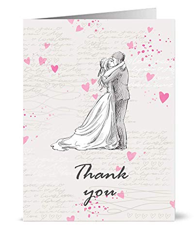 50 bröllop "Bride and Groom" tackkort med kuvert - teckning vintage stil gratulationskort för att tacka människor för deras närvaro..