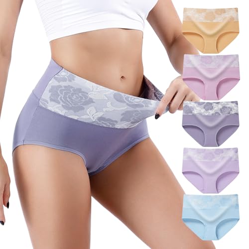 Anntry Damtrosor med hög midja bomullsunderkläder set med 5 mjuka och andningsbara trosor med full täckning, Färger -3, XXL