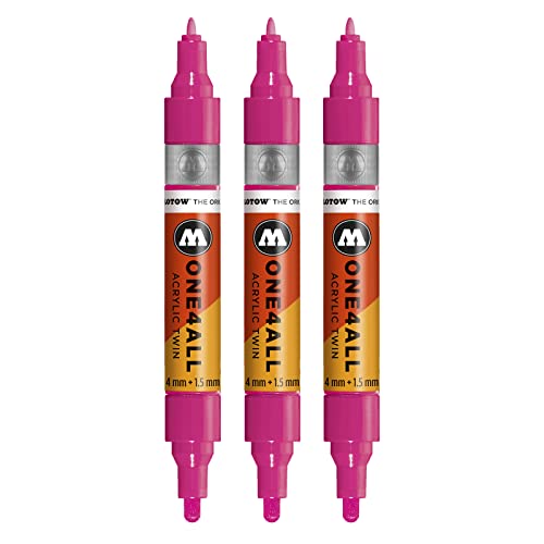 Molotow One4All Acrylic Twin markeringspenna (linjetjocklek 1,5 mm och 4 mm, hög täckning och permanent), 3 stycken färg 217 neon rosa flouresande