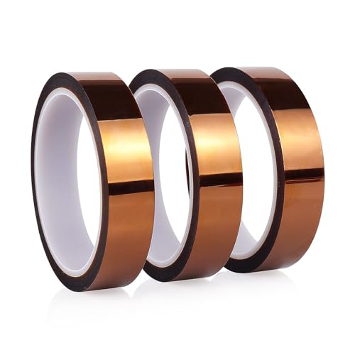 DMJJSD Värmebeständig Tejp 20 mm x 33 m - Kapton Hög Temp Polyimid Film för Höga Temperaturer - Täckning, Lödning, Elektrik (3 Rullar)