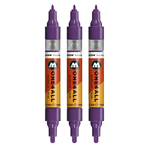 Molotow One4All Acrylic Twin Marker (linjetjocklek 1,5 mm och 4 mm, hög täckning och permanent), 3 stycken färg 042 vinbär
