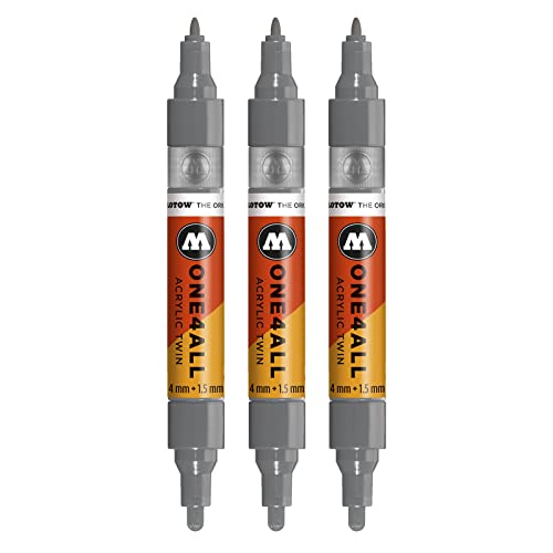 Molotow One4All Acrylic Twin Marker (linjetjocklek 1,5 mm och 4 mm, hög täckning och permanent), 3 stycken färg 238 grå blå mörk