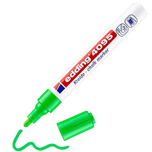 edding 4095 kolmarker – ljusgrön – 1 kolpenna – rund spets 2–3 mm – vattenlöslig penna med medium spets för krittalvor, fönster, glas, speglar – flytande kolmärkpennor för opak täckning