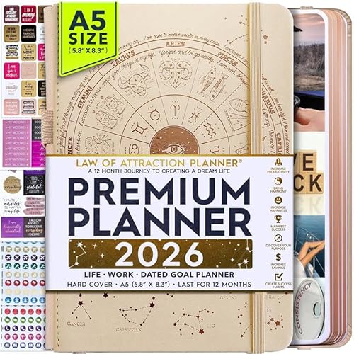 Law of attraction daglig planerare – deluxe-dags kalender och tacksamhetsdagbok för att öka produktiviteten, lyckan och tidshantering (vanilj astro färg, A5 odaterad)