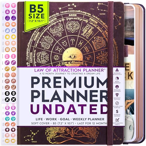Lag om attraktionsplanerare - Odaterad Deluxe veckoplanerare, en 12 månaders resa för att öka produktiviteten och lyckan - livsorganisatör, tacksamhetsdagbok och klistermärken B5-storlek
