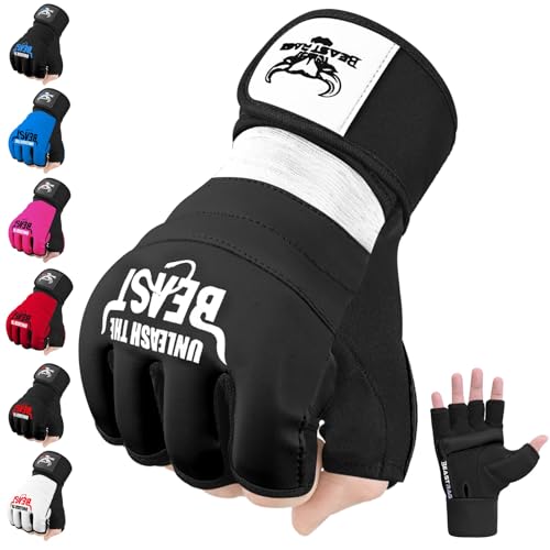 BEAST RAGE Punch Bag Taekwondo Karate Mitts Handskar för män och kvinnor,Halvfinger MMA Kickboxning Sparring Kampsport Boxning Träningshandskar - Träning Light Workouts,Muay Thai (Black, M)
