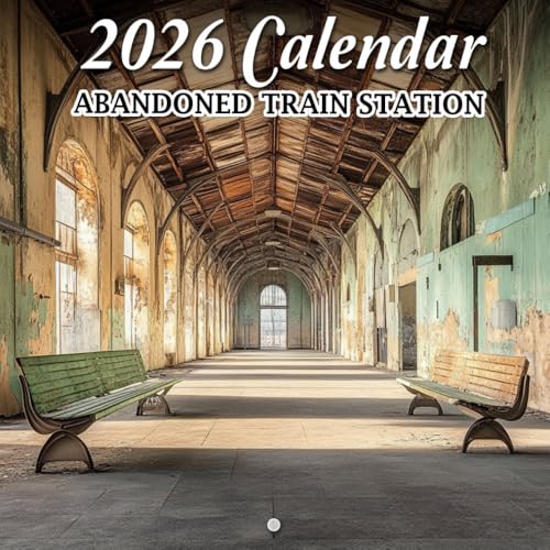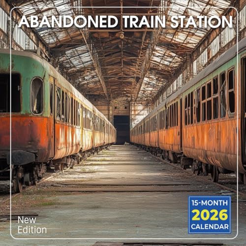 Abandoned Train Station Calendar 2026: Ghostly Rails & Timeless Silence | Kalender Calendario Calendrier | BONUS 3 Months 2025, Lunar Phases Included