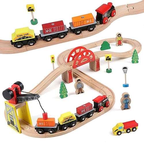 KABENFIS träspår 39 st tågspår leksak med kranbro och trätåg spår tåg leksak för barn