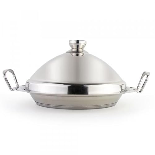 Baumalu, Tajine 28 cm med lock, rostfritt stål, kompatibel med alla induktionshällar, homogen och snabb matlagning, storlek 28 cm, färg rostfritt stål