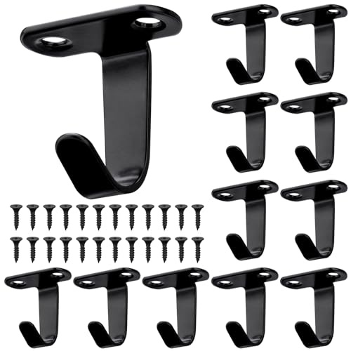 Kssvzz 12 stycken takkrokar, krokar i rostfritt stål för upphängning av garderob, svarta skruvkrokar med 24 skruvar, väggkrokar för tak växtkorg båt, hängande fågelhus, lyktor (svart)