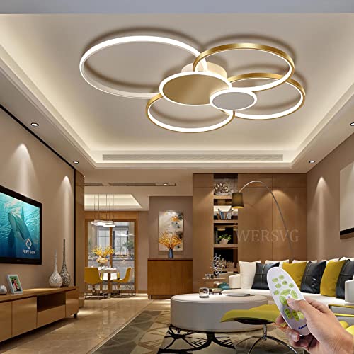 LED taklampa Creative Gold Ringshape Design Vardagsrum taklampa Dimbar med fjärrkontroll Sovrum lampa för Study Room, Vardagsrum, Sovrum, Matrumsbelysning (6 ringar)