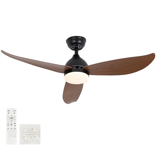 YUNZI Sovrum Reversibel Takfläkt med Lampa och Fjärrkontroll Tyst 6 Hastigheter Dimbar LED Takfläkt med Ljus med Timer Modern Vardagsrum Takfläkt med Belysning,Brown