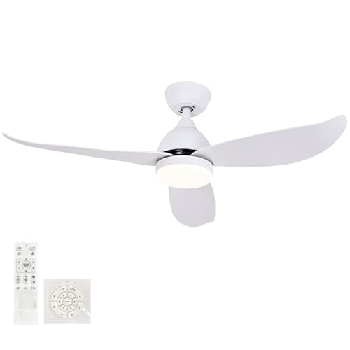 YUNZI Sovrum Reversibel Takfläkt med Lampa och Fjärrkontroll Tyst 6 Hastigheter Dimbar LED Takfläkt med Ljus med Timer Modern Vardagsrum Takfläkt med Belysning,White