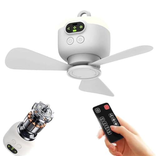 Campingfläkt 8 000 mAh batteridriven, bärbar takfläkt med fjärrkontroll USB med lampa, takfläkt uppladdningsbar tältfläkt