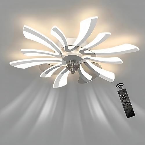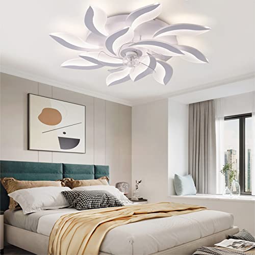LED Takfläkt Med Ljus Och Fjärrkontroll Fläkt Takbelysning DC Vändbar 6-växlad Takfläkt Med Lampor Dimbar För Vardagsrum Sovrum Modern Tyst Takfläkt Lampa Sommar Vinter Funktion,Vit