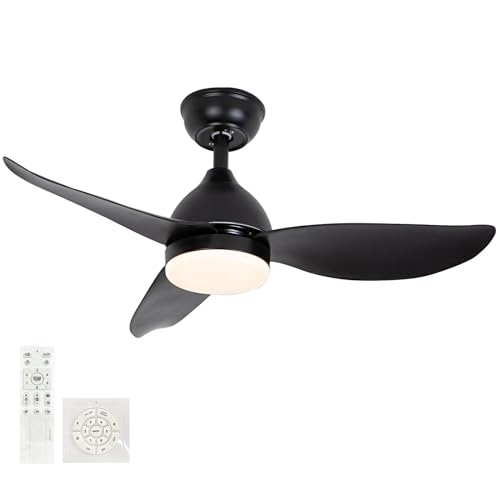 Sovrum Reversibel Takfläkt med Lampa och Fjärrkontroll Tyst 6 Hastigheter Dimbar LED Takfläkt med Ljus med Timer Modern Vardagsrum Takfläkt med Belysning,Black