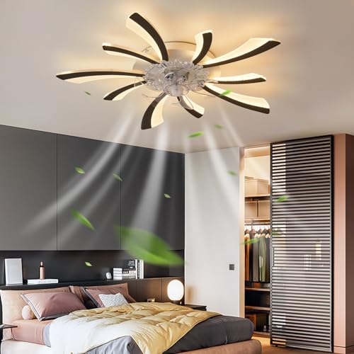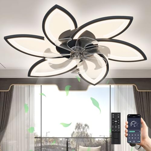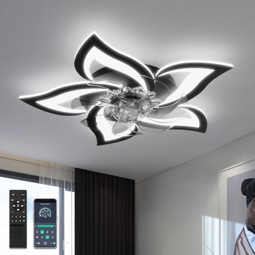 50W Takfläkt Med Ljus LED Dimbar 6 Växlad Vändbar DC Motor Takfläkt Med Belysning Och Fjärrkontroll Bluetooth APP Modern Tyst Takfläkt Med Lampa För Vardagsrum Sovrum-Svart