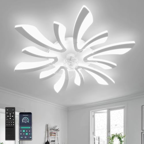 YUNZI Sovrum Reversibel Takfläkt med Lampa och Fjärrkontroll Tyst 6 Hastigheter Dimbar LED Takfläkt med Ljus med Timer Modern Vardagsrum Takfläkt med Belysning,White