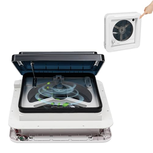 ROGONPDK Ventilation för husbil | 28 x 28 cm husvagn, luke, fönster, takkåpa | takfönster, ljudisolerad, tyst fläkt | multifunktionellt husbiltak med LED-ljus och frånluftsfläkt