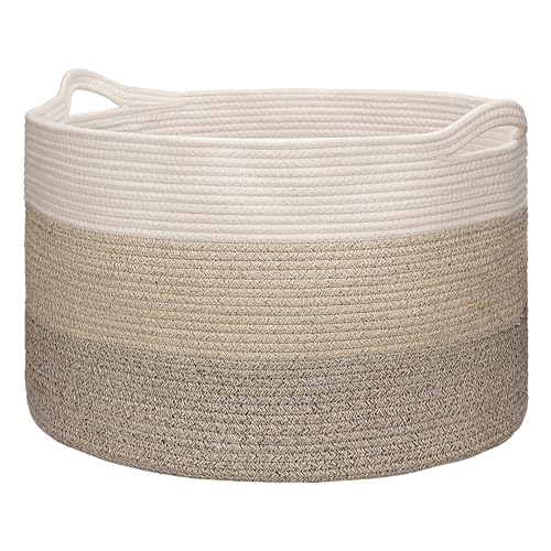 Ajiteogy XXXL stor tvättkorg, D 55 x H 35 cm, vävd takkorg, bomullsrep förvaringskorg för vardagsrum, leksaker, handdukar, kuddar, kläder (brun)
