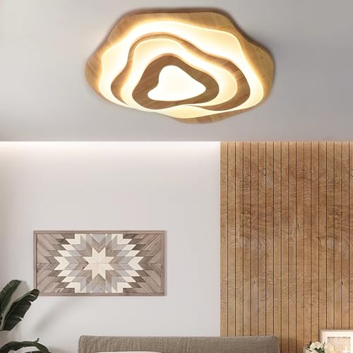 SENFAY LED taklampa trä 3-vånings vardagsrum taklampa 3000K varmvit -50W - 3500lm - Ø60cm oljad ek taklampa sovrumsring dekorativ oregelbunden design lampor vardagsrumslampa