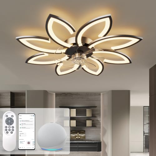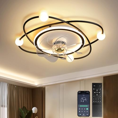 ycwdcz Takfläkt med belysning och fjärrkontroll app, fläktlampa tak tyst, taklampa med fläkt modern design, dimbar, minnesfunktion, 6 hastigheter, DC-motor