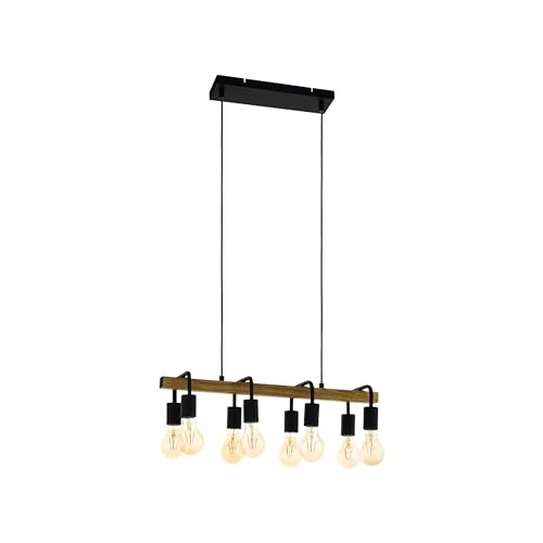 EGLO Erribera Hänglampa med 8 ljuskällor, vintage-pendellampa att hänga över matbordet, hängande taklampa i industriell design, matrumslampa av svart metall, med träutseende, för E27-glödlampor