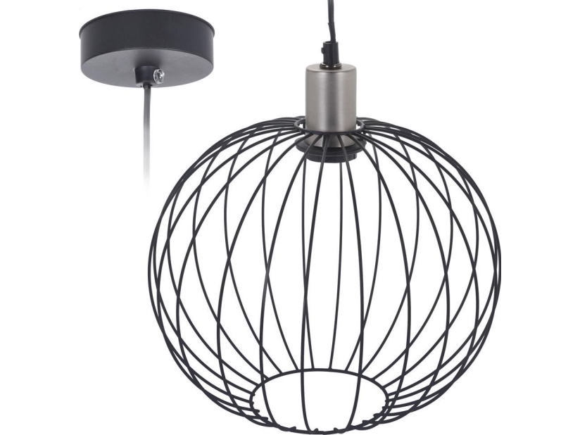 iDEGU Vintage industriell taklampa med metallbur, pendellampa, geometrisk design, taklampa E27, för sovrum, café, restaurang, hall, korridor, 20 cm, svart