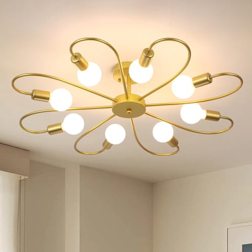 Qcyuui modern 8-ljus taklampa industriell sputnik taklampa, E27 halvspolad montering guld ljuskronor belysning för vardagsrum bondgård kök (glödlampa ingår inte)