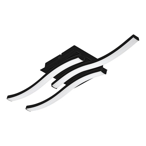 EGLO Rolimare LED-taklampa, böjd taklampa för kontor, kontorslampa med neutralvitt ljus, kökslampa av svart metall och vit plast