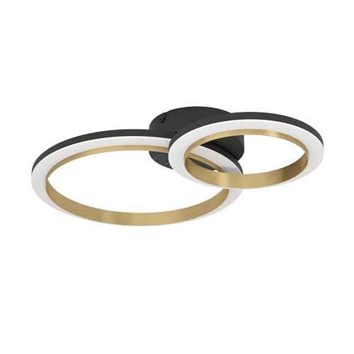 EGLO LED Taklampa Calliera, Taklampa Dimbar I Steg, Taklampa För Kontor, Kökslampa Av Metall Och Plast I Svart Och Mässing, Neutral Vit, 30 X 42 Cm