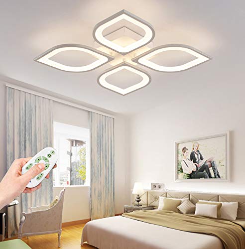 Taklampa LED, dimbar vardagsrumslampa, modern med fjärrkontroll, 3 000 K - 6000 K, taklampa, kreativ blomdesign, ljuskrona för sovrum, matrum, kontor eller som kökslampa, 4 huvuden, 40 cm, 36 W