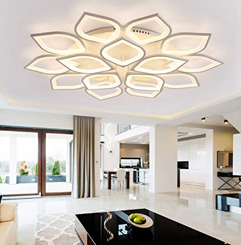 Taklampa LED, dimbar vardagsrumslampa, modern med fjärrkontroll, 3 000 K - 6000 K, taklampa, kreativ blomdesign, ljuskrona för sovrum, matrum, kontor eller som kökslampa, 10 + 5 huvuden, 120 cm, 160 W
