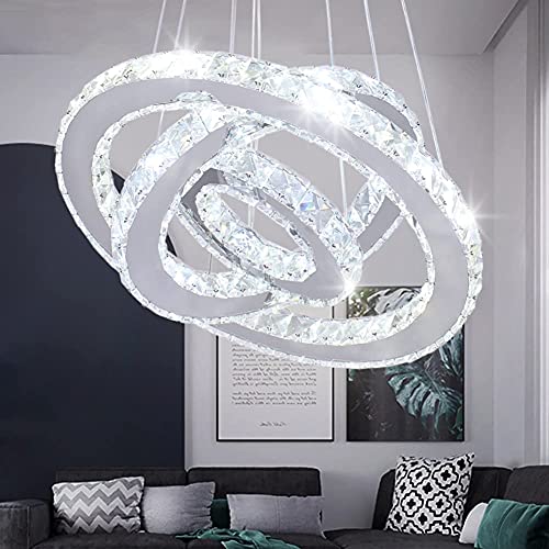 VETRULUS LED Kristall Taklampa, Modern Ljuskrona med 5 Ringar i Rostfritt Stål, Vit för Sovrum, Vardagsrum, Matsal