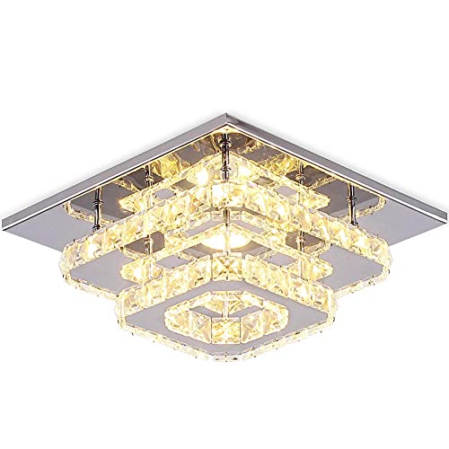 Kristall LED-taklampa Kristalllampa K9 rostfritt stål Modern infälld ljusarmatur Fyrkantig ljuskrona Taklampa för matsal Vardagsrum Sovrum (varmvit)
