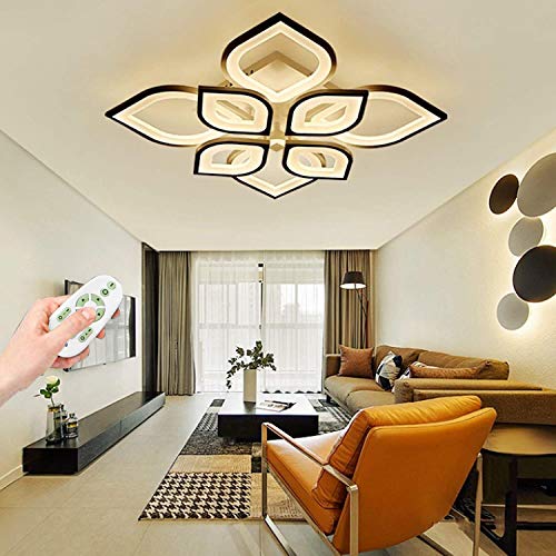 Taklampa LED, dimbar vardagsrumslampa, modern med fjärrkontroll, 3 000 K - 6000 K, taklampa, kreativ blomdesign, ljuskrona för sovrum, matrum, kontor eller som kökslampa, 4 + 4 huvuden, 60 cm, 55 W