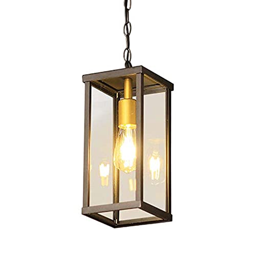 Mengjay Trade Klassisk antik metall utomhus hängande transparent glas lampskärm taklampa ljuskrona lampa för trädgård uteplats lusthus, vattentät takbelysning