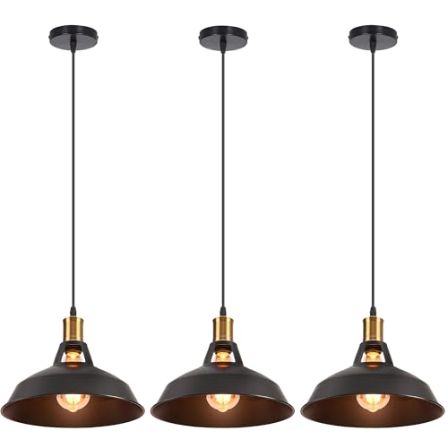 iDEGU 3-pack retro industriell taklampa ljuskrona metallpendellampa 27 cm vintage E27 taklampa för matsal, vardagsrum, sovrum, restaurang, café, bar (svart)