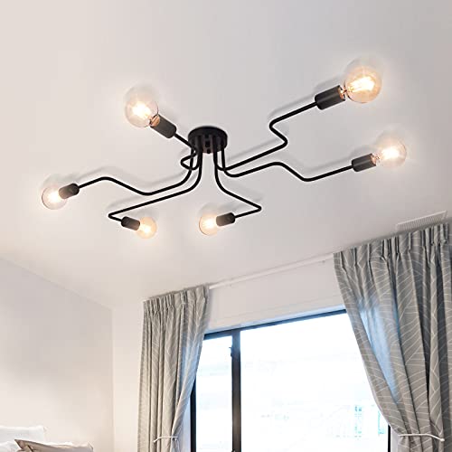 OYIPRO Taklampa, ljuskrona med 6 ljus, kreativ takbelysningsarmatur, E27, svart bas för matsal, kök, sovrum ...