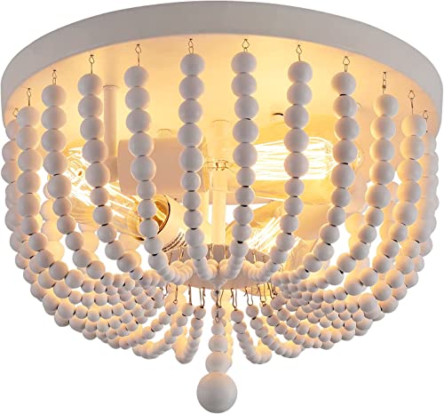 H.W.S Taklampa Vardagsrum Taklampa Trä Bondgård Ljuskrona Träpärlor E27 Vintage Pendellampa Inbyggnadsfäste Sovrum Kökslampa Matsal Hall Lampa (A)