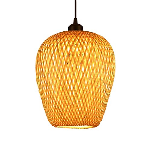 GUANSHAN Handvävd bambu taklampa naturlig bambutråd pastoral stil hängande lampa taklampa ljuskrona för bar, kaffe, loft, restaurang, vardagsrum, sovrum