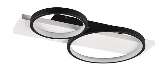 Trio Leuchten Medera LED-taklampa 643810232, matt svart, trä, vit med 26 watt LED, dimmer strömbrytare
