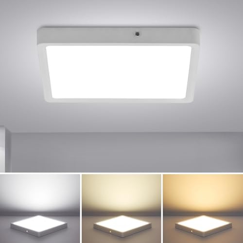 Combuh Led Taklampa med Rörelsesensor 30W 2400LM, IP56 Vattentät Badrumsbelysning, 3000K Varmvit, Takpanel för Garage, Hall, Trappor, Förråd, 25 x 25 x 4 cm