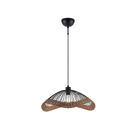 Eglo Taklampa Anwick 1, 1 glödlampa taklampa vintage, boho, takstrålkastare av stål och rotting, vardagsrum i svart, natur, kök, spot med E27-sockel