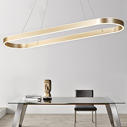 Pendellampa, modern, oval, matbordslampor, LED, kontor, hänglampa, dimbar, vardagsrum, taklampa, justerbar höjd, sovrum, dekoration, hängande lampor för kök, bar, matsal, taklampa (guld, L 120 cm)
