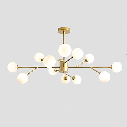 RuiRfh Modern 13-ljus stort vardagsrum guld Pendellampa med vit sfärisk lampskärm taklampa liten sfärisk Hängande armaturer hängande Sputnik ljuskrona för kök sovrum matsal(13 heads)