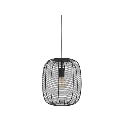 EGLO Rinroe Hänglampa med 1 ljuskälla, pendellampa att hänga över matbord, industriell hängande taklampa av svart metall, matrumslampa med E27-sockel, 32,5 cm i diameter