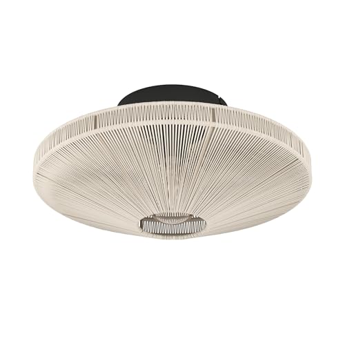 EGLO Midsumer Taklampa, i tyg, japansk taklampa i svart metall och krämfärgat naturgarn, vardagsrumslampa med E27-sockel, diameter 38 cm